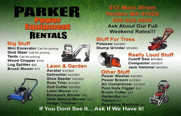 Parker Power Equipment: Lawn equipment rental service in Holden, MA