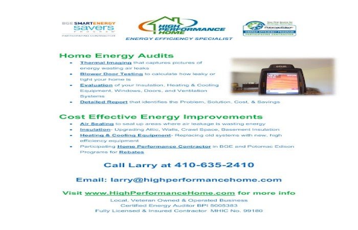 Customer reviews of High Performance Home LLC in New Windsor, MD