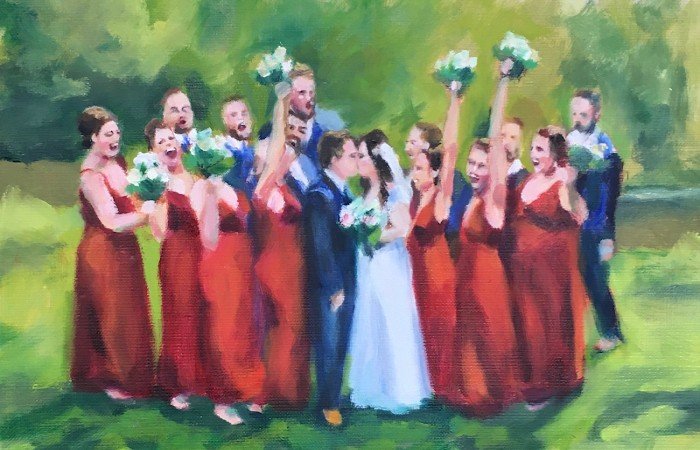 “We absolutely loved having Patrick and his wife paint our wedding! It was a bit of a spontaneous idea, but honestly, it was 100% worth every penny. They were such a joy to have around, and seeing the finished painting delivered to us just made it feel truly special – it’s a beautiful keepsake we’ll treasure forever. We’d definitely hire them again for any similar event!”