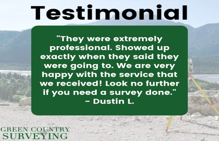 “I was incredibly impressed with Green Country Survey. They were able to complete my survey on very short notice, and John Couch and his team were fantastic – incredibly responsive and always took the time to explain everything clearly. Honestly, they’re a top-notch operation!”