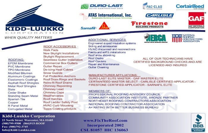 Kidd-Luukko Corporation: Roofing contractor in Worcester, MA